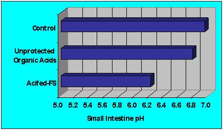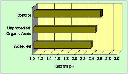The efficacy of Acifed-FS is derived through the choice or organic acids which can dissociate at crop and stomach level and their ability to pass through stomach environment as such (Protected) and to exert their antibacterial activity at intestinal level, where it is actually required.